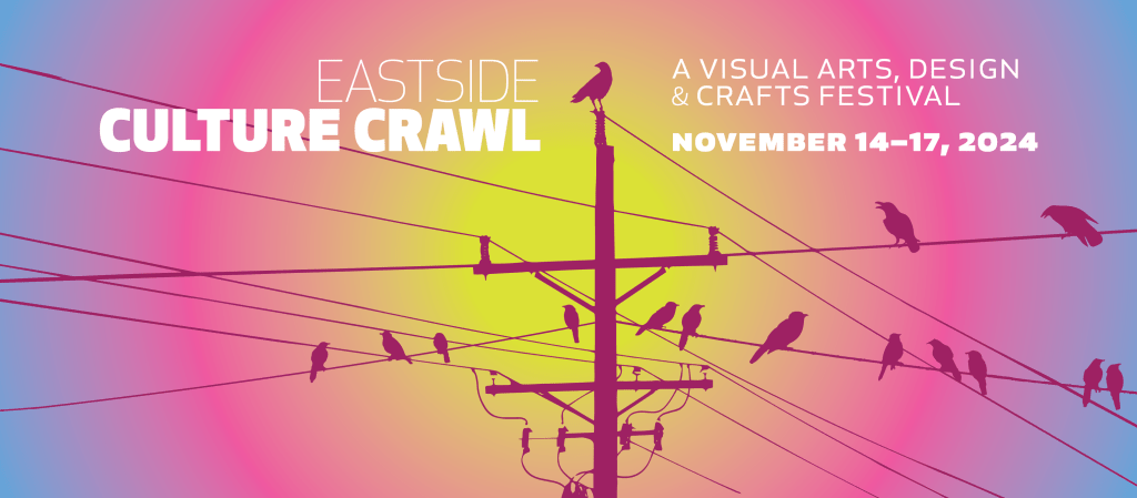 The Eastside Culture Crawl runs from November 14 – 17, 2024. November 14th and 15th runs from 5:00 pm to 10:00 pm and November 16th and 17th from 11:00 am to 6:00 pm. The Eastside Culture Crawl covers a wide geographical area on the Eastside of the City. We find the Crawl Map to be a great resource in narrowing down artists and locations you may be interested in visiting. The Eastside Culture Crawl is a free event and open to all ages. For more information visit, the Eastside Culture Crawl.